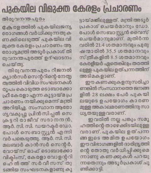 The Additional Secretary, Ministry of Health & Family Welfare, GoI has asked the Kerala police to include violations of the Cigarette and other Tobacco Products (Prohibition of Advertisement and Regulation of Trade and Commerce, Production, Supply and Distribution) Act, 2003 or COTPA in short, in monthly crime reviews.